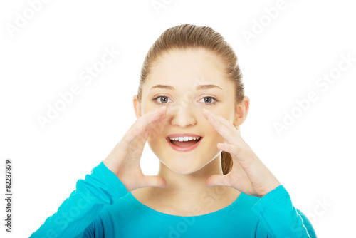 Fototapeta premium Young woman whispering a gossip.
