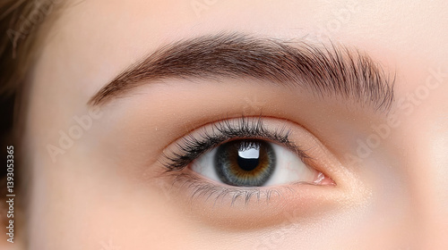 © Mehran, Obraz premium Young woman with bald eyebrows before and after hair transplantation. Alopecia concept.