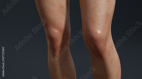 © BB_Stock, Fototapeta premium Young woman with cracked, uneven legs on a grey background.