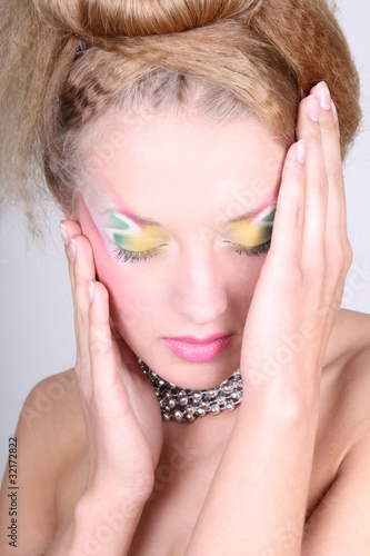 Fototapeta premium Young woman with creative make-up and coiffure