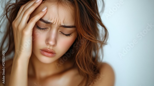 © wannathon, Naklejka premium Young Woman With Frustrated Expression Touching Her Forehead