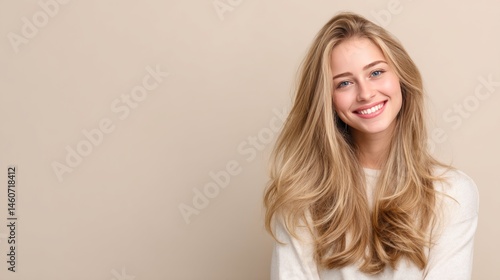 © THESUN, Fototapeta premium young woman with long blonde hair smiling.