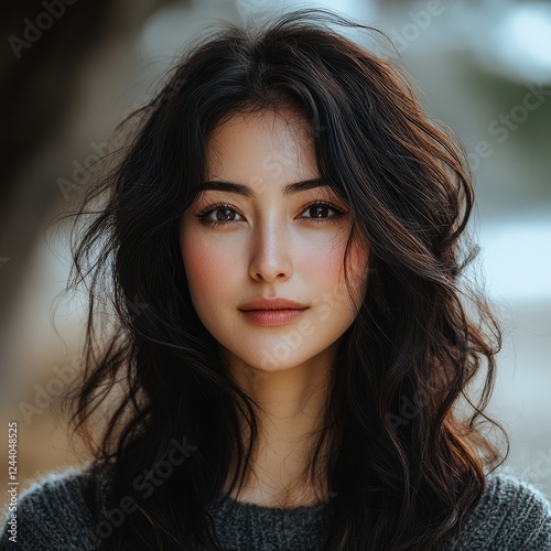 Fototapeta premium Young Woman with Long Dark Wavy Hair
