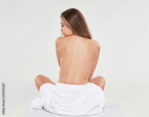 Obraz premium Young woman with naked back wearing towel