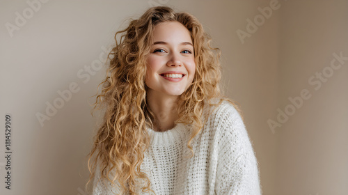 © utaem2022, Obraz premium Young woman with natural curly blonde hair smiling
