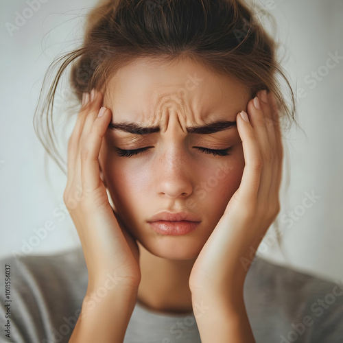 Fototapeta premium Young Woman with Stressful Headache Expression