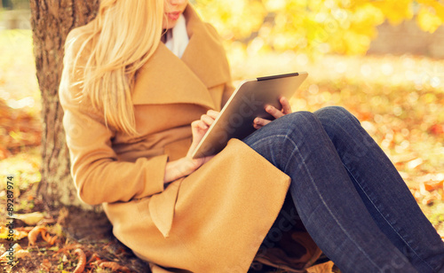 © Syda Productions, Obraz premium young woman with tablet pc in autumn park
