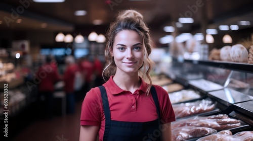 Fototapeta premium young woman worker or employee of a supermarket