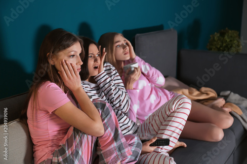 © Africa Studio, Naklejka premium Young women watching movie at home in evening