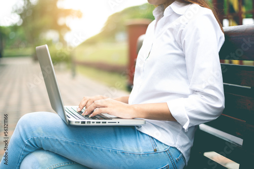 © TWEESAK, Naklejka premium young women working on laptop computers