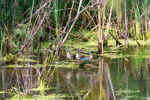 © Barbara, Fototapeta premium Young Wood Ducks On The River In Late August
