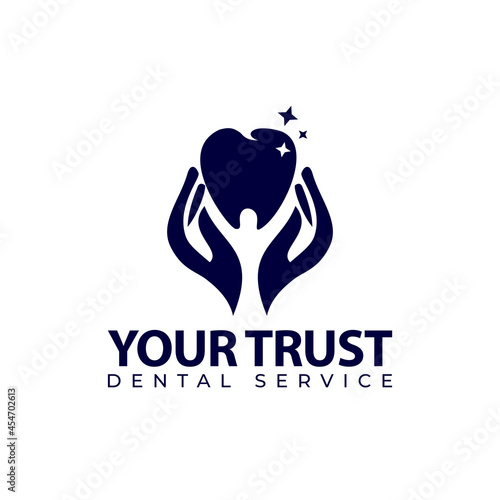 Obraz premium your trust dental service logo, hand touching teeth gently vector