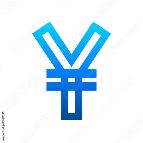 Obraz premium Yuan and Yen currency sign symbol - blue simple gradient outline, isolated -...