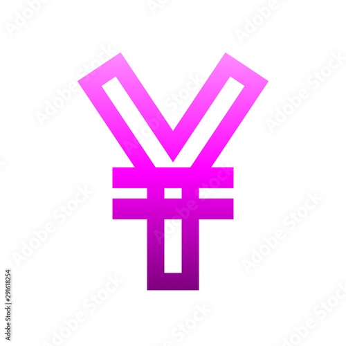 © visart, Fototapeta premium Yuan and Yen currency sign symbol - purple-pink simple gradient outline, isolated - vector