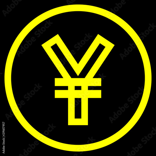Fototapeta premium Yuan and Yen currency sign symbol - yellow simple outline inside of circle,...