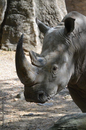© dejavudesigns, Naklejka premium Z bliska spójrz na twarz nosorożca