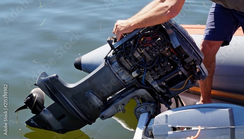 © brudertack69, Naklejka premium Zündkerzenwechsel beim Aussenborder