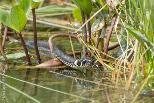 © holgman1, Fototapeta premium Züngelnde Ringelnatter auf Beutejagd