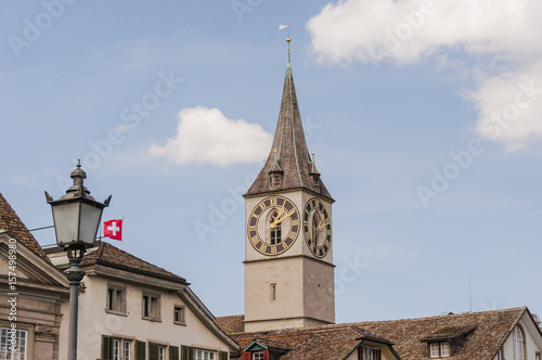Obraz premium Zürich, Stadt, Altstadt, St. Peter, Kirche, Kirchturm, Altstadthäuser,...