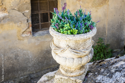 Fototapeta premium Zabytkowy wazon z bukietem polnych kwiatów