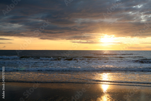 Naklejka premium Zachmurzony zachód słońca na plaży