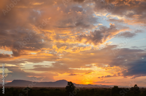 © Stock_ko, Fototapeta premium Zachód słońca i chmury tło scenerii i wspaniałe kaniony.