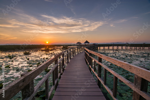 © Avetphotos, Fototapeta premium zachód słońca krajobraz drewniany most