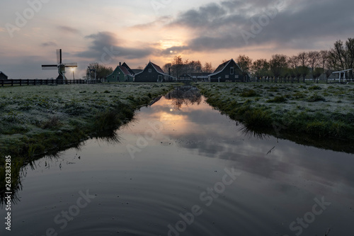 © Ankor light, Naklejka premium zachód słońca na holenderskiej wsi
