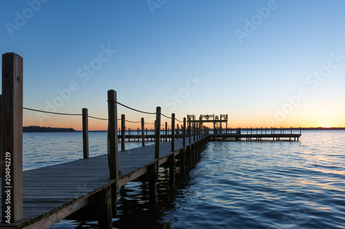 © InfiniteVP, Fototapeta premium Zachód słońca nad pięknym jeziorem z dokiem