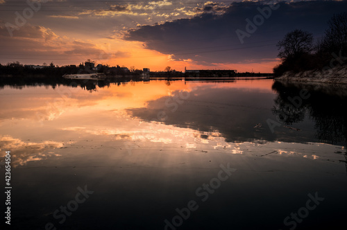 © Henryk Niestrój, Fototapeta premium zachód słońca nad stawem miejskim w Opolu