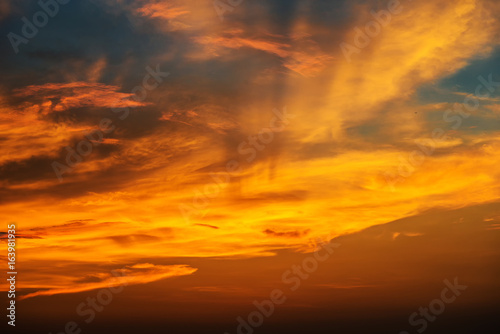 © MAGNIFIER, Obraz premium Zachód słońca sprawia, że niebo i chmura stają się pięknym złotym kolorem żółtym.