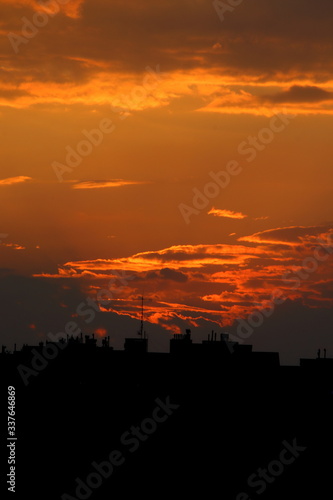 © Tomus, Obraz premium Zachód słońca w mieście.