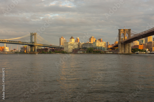Obraz premium Zachód słońca widok na Manhattan Bridge i Brooklyn Bridge, Nowy Jork