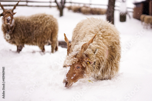 © Carolina, Fototapeta premium Zackelschafe im Schnee