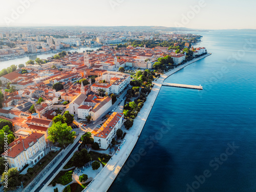 Naklejka premium Zadar historic peninsula roman architecture city. Dalmatia region of Croatia coast beach