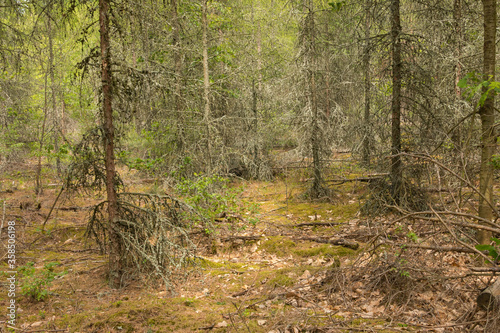© boguslavus, Fototapeta premium Zagajnik suchych drzew iglastych.