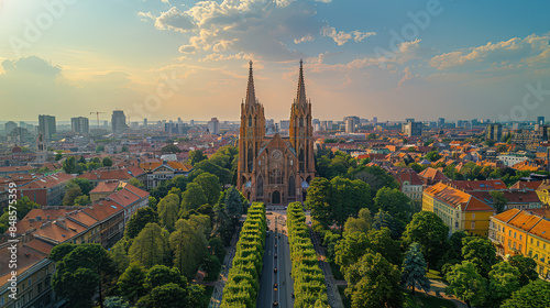 Naklejka premium Zagreb, Croatia in warm sunlight created with Generative AI technology