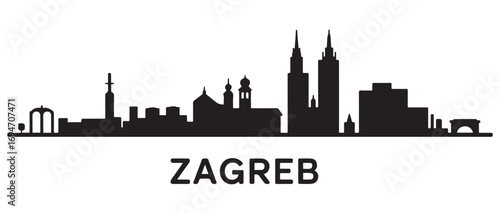 © Nargis, Fototapeta premium Zagreb skyline silhouette. Black Zagreb city design. Vector black silhouette. with white background