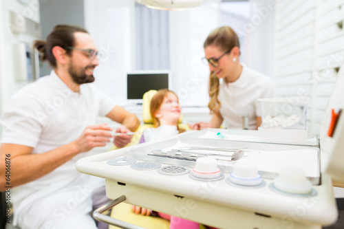 Fototapeta premium Zahnärzt behandelt Mädchen in Zahnarztpraxis