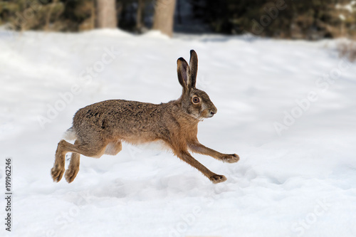 Obraz premium Zając biegający po lesie