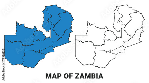 © Jayartiez, Obraz premium Zambia Blue detailed outline map border regions outline vector set