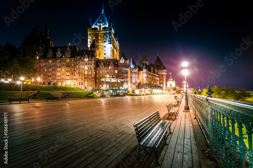© Nicolae Merceanu, Fototapeta premium Zamek Frontenac w starym mieście Quebec nocą.
