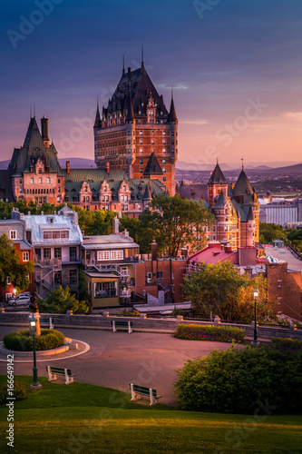 © Nicolae Merceanu, Obraz premium Zamek Frontenac w starym mieście Quebec w pięknym świetle wschodu słońca. Obraz o wysokim zakresie dynamicznym. Koncepcja podróży, wakacji, historii, pejzażu miejskiego, przyrody, lata, hoteli i architektury
