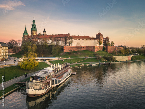© DRONE QUEST, Obraz premium Zamek Królewski na Wawelu i Wisła