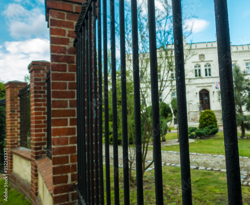 Obraz premium Zamek w Mrozowie za kratami ogrodzenia