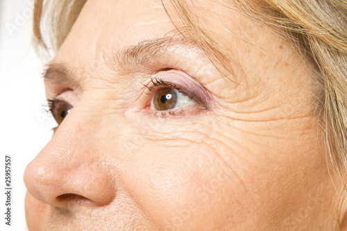 © iceteastock, Naklejka premium Zamknij się oczy starszej kobiety
