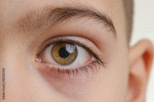 © triocean, Fototapeta premium Zamknij się widok zielone oko chłopca patrząc na kamery