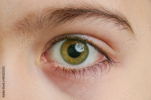 © triocean, Fototapeta premium Zamknij się widok zielone oko chłopca patrząc na kamery