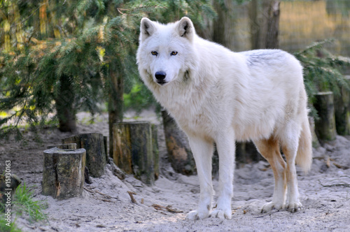 © Christian Musat, Obraz premium Zamknij się z arktycznego białego wilka