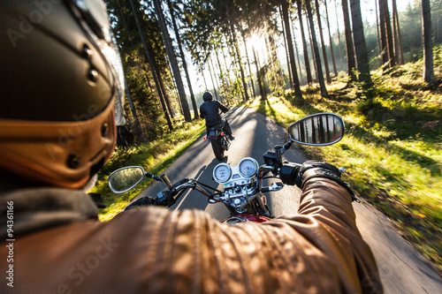 © Lukas Gojda, Obraz premium Zamknij się z motocykla dużej mocy